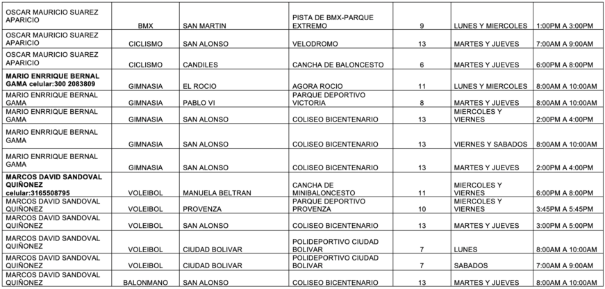 Horarios y Deportes Escuelas de Formación Deportivas del INDERBU