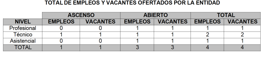La OPEC-Oferta Pública de Empleos de Carrera, para el proceso de selección es la siguiente: